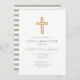 Invitation Sage Green Stripes Religious Boy Confirmation
