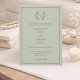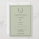 A soft sage green colored background decorated with a taupe, hand drawn wreath. White colored frames and text. Personalize and your monogram initials, names and details.