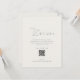 An elegant wedding details card featuring refined sage green typography and a modern QR code layout.