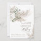 Sage vert verdure, fleurs blanches et pampas herbe boho invitations de mariage