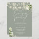 Cet élégant vert sauge vert verdure à cordes florales lumières mariage soirée invitation avec de jolies lumières à cordes et la verdure florale, peut être personnalisé avec vos informations dans la typographie chic avec vos détails de site mariage et votre code QR au verso. Conçu par Thisisnotme©
