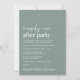 Invitation minimaliste moderne à la réception de mariage vert sauge avec "Happily Ever After Party" dans un mélange d'un script blanc contemporain et une typographie blanche audacieuse et tendance. Personnalisez votre invitation et ajoutez vos noms dans un script de type signature. L'arrière présente votre photo et vos noms et date mariage réunis par un coeur.
