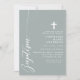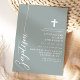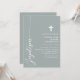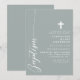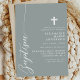 Célébrez l'occasion sacrée d'un baptême avec cette élégante invitation couleur sauge poussiéreuse. Dotée d'un design minimaliste avec un script moderne et une délicate croix, cette invitation est parfaite pour inviter amis et famille à se joindre à cet événement spécial. La couleur sauge poussiéreuse douce et les lignes simples et épurées ajoutent une touche de sophistication et de grâce, ce qui la rend idéale pour une célébration aussi significative. Personnalisez les détails pour créer une invitation unique et mémorable pour le baptême de votre enfant.