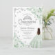 Invitation Sage Vert Aquarelle Roses Argent Quinceanera