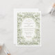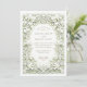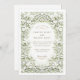 Célébrez votre mariage avec cette enchanteresse invitation iris blanc avec des motifs floraux complexes posés contre un arrière - plan vert sauge serein. Le design est mis en valeur par un cadre d'inspiration baroque imitation gaufrée, lui donnant un charme intemporel et sophistiqué. Parfait pour les mariages d'inspiration nature, formels ou romantiques, cette carte dégage élégance et charme. Veuillez noter que les éléments gaufrés sont imprimés et ne comprennent pas de véritables textures surélevées.