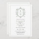Élégant sauge vert vintage crête florale monogramme et faire-part de mariage de bordure. Invitation vos invités avec cette charmante faire-part de mariage au design floral vintage vert sage. Une crête magnifiquement conçue présente votre monogramme personnalisé avec vos noms en typographie verte complémentaire. Une fine bordure verte complète l'aspect élégant. Au verso, un code QR permet d'accéder rapidement aux détails RSVP et à d'autres informations mariages essentielles.