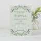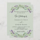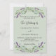Un arrière - plan vert sage décoré de fleurs de lavande et de verdure d'eucalyptus. Personnalisez et vos noms et détails.