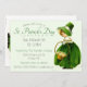 Illustration vintage de la Saint-Patrick avec une fille en robe verte longue et chapeau avec un panier de fleurs blanches.