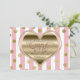 Saint Valentin 1er anniversaire ONE Gold Heart Pink Stripes Invitation. Personnaliser pour tout événement.