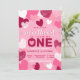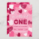 Saint Valentin Petite Chérie Rose Invitation Anniversaire. Nom et adresse personnalisés Valentine's day première anniversaire invitations de fête, avec arrière - plan rose pastel et rose, blanc, magenta et coeurs bordeaux. facile à personnaliser modèle, pour un an bébé fille 1er anniversaire.