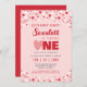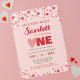 Saint-Valentin Première fête d'anniversaire mignon rose Coeur rouge Invitation, Faisons la fête bébé corsé 1er anniversaire invitation avec le coeur rouge et rose mignon.