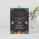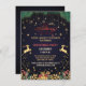 Custom Elegant Golden Reindeer Holiday Season Unique, classique, tendance et décoratif Invitations, Une carte d'invitation de Noël distinctive qui contient un design d'arbres de Noël et des décorations et a aussi un renne d'or sur les côtés, une carte unique pour féliciter votre famille avec une citation de texte "Joyeux Noël" "Bonne année" en faux or style. Customisez ou personnalisez-le avec un nom de famille (ou des noms individuels) de votre choix sur un élégant arrière - plan bordeaux bleu-noir. Et un message de bienvenue de saison personnalisable à l'intérieur de la carte. Cliquez sur le bouton "Customiser" pour modifier les polices et les couleurs du produit unique.
