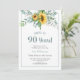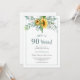 Salutations de 90 ans Sunflower Anniversaire Invitation Cette invitation à la floraison d'aquarelle de tournesol est parfaite pour votre célébration spéciale. Ce design est composé d'un arrière - plan blanc avec un agencement floral aquarelle et une typographie personnalisée. Ajoutez vos informations pour compléter le look.