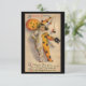 Cette invitation vintage présente un joli poème d'Halloween et un petit enfant vêtu d'un costume orange et blanc, le long d'un jack-o-lanterne.