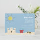 Profitez de cette invitation animée à la fête estivale pour rassembler vos amis pour votre prochain bain de plage. © Mood 4 Cute Cette invitation ludique sur le thème de la plage convient à tout événement tropical. L'invitation comprend un château de sable, des lunettes de soleil, le soleil et un seau rouge. © Mood 4 Cute