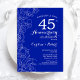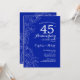 Invitation de fête d'anniversaire de mariage Sapphire Floral 45 ans. Design moderne minimaliste avec des dessins de contours botaniques et une typographie en police de caractères script. Carte d'invitation élégante parfaite pour une célébration élégante. Peut être personnalisée pour n'importe quelle année de mariage. Invitations imprimées Zazzle ou modèle numérique téléchargeable instantanément.