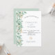 Un arrière - plan blanc chic décoré de sprigs botaniques verts et faux or, de fleurs vertes et de feuillage. Personnalisez et ajoutez vos noms et les détails du mariage. Lettres noires et vertes. Dos : couleur arrière - plan verte.