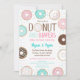 Cette douce invitation à l'arrosage de bébé présente nos beignets dessinés à la main dans des couleurs pastel avec des confettis saupoudrés.