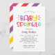 Les invitations à la douche "saupoudrée" pour bébé sont assorties d'un texte de couleur vive et ludique avec aspersion de dessert et d'accents de motif rayé diagonaux. Personnalisez avec votre libellé d'événement personnalisé. Les couleurs arc-en-ciel parfaites pour accueillir une petite fille sont le rose chaud, le rouge orange, le bleu aqua, le jaune vif et le violet violet avec le blanc.