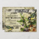 PALETTE DE COULEUR : jaune, tan, crème, orange, vert et noir. DESIGN : Cette collection ou ensemble de faire-part de mariage inspirés de la typographie vintage antique a un ensemble complet de produits et a été créé dans plusieurs coloris. En utilisant les tourbillons décoratifs de l'imprimerie vintage de l'époque victorienne baroque, mélangé avec l'art de la carte postale fleur y compris le lis de la vallée, violets anglais, roses et fleur de dragon aigne. Une paire d'oiseaux chanteurs jaunes avec une cage d'oiseau ouverte complète l'avant de l'invitation. Le verso inclut votre texte, qui est facilement customisé à l'aide des champs modèle pour la personnalisation. Il y a des motifs floraux plus tourbillonnants, des lignes tourbillonnantes, des bordures vieillies, grungées et la cage à oiseaux et les roses. Il s'agit d'un mélange d'éléments de design vintage et d'arrière - plans d'aquarelle originaux dessinés sous forme graphique dans de nouvelles oeuvres d'art d'Audrey Jeanne Roberts.