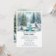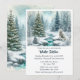 Cette invitation au solstice d'hiver présente un paysage enneigé avec des sapins dans la forêt, un renard blanc arctique et un arbre de fête avec des lumières à côté d'un ruisseau gelé. Cette scène enneigée est parfaite pour une célébration du dîner du solstice d'hiver. Personnalisez cette invitation avec votre propre texte. Art numérique à l'aquarelle conçu par Susang6