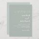 Moderne, schlicht, élégante Hochzeiteinladungskarte in einem Grau-Grün, Weiß. Editiere dein Produkt einfach in wenigen Minuten. Über "weiteres personalisieren" können Schriftart/Größe/Farbe und Position verändert werden.