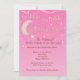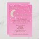 L'invitation mignonne de baby shower avec un scintillement, scintillent peu de thème d'étoile. Ciel rose mou avec des étoiles espiègles de blanc et un croissant de lune crème mou. Le ruban blanc Twisty décore le dessus. Facile d'éditer pour votre propre scintillement de scintillement peu de thème d'étoile.
