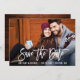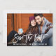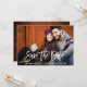 Script De Brosse Moderne Enregistrer La Date Fiançailles Carte photo - Script Blanc, Bois Rustique Retour