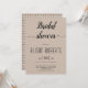 Scénario cursive calligraphie kraft style papier rustique mariage invitation de douche nuptiale. Le dos comprend un motif géométrique noir et blanc sur papier kraft brun.