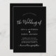 Script de calligraphie moderne minimaliste Cartes de Faire-part de mariage noires. Doté d'une élégante police de caractères blanc de la queue de swash lettrée main sur arrière - plan noir. Motif cardiaque entre les noms. Personnalisez l'invitation avec un texte personnalisé simple et élégant, y compris les noms du couple et tous les détails essentiels de la cérémonie de mariage. Commandez dès maintenant et faites de votre fête mariage une fête vraiment inoubliable !