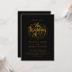 Cette élégante faire-part de mariage en noir et or est parfaite pour un mariage moderne. Le design simple présente une élégante calligraphie dorée sur un arrière - plan noir. La carte d'invitation comprend les détails du mariage au dos au lieu de payer une carte d'enceinte séparée.