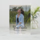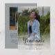 Texte de script élégant "Diplômé" deux modèles d'annonce de remise de diplôme avec photo, comportant une grande photo de 13 x 18 cm sur le devant avec une photo carrée plus petite en haut à l'arrière et vos détails de remise de diplôme en dessous. Le modèle de devant est configuré pour le nom de votre senior diplômé, l'année de la promotion et l'école en bas sous le script "Diplômé". Un fond semi-opaque blanc se superpose à la photo pour faire ressortir le texte noir en bas. Disponible avec des couleurs de fond variées ou le design peut être modifié pour changer la couleur de fond arrière et les couleurs de texte comme souhaité. Le style de texte "Diplômé" ne peut être modifié que par le concepteur, mais la couleur est modifiable. Conception composite par Holiday Hearts Designs (droits réservés) avec des photos de remplacement de modèle fournies via Unsplash.