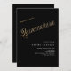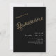 Une invitation minimaliste moderne Quinceañera. Arrière - plan noir classique et le mot Quinceanera écrit avec de grandes lettres en faux or. Personnalisez et ajoutez un nom et des détails du parti.