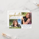 Moderne 2 photo collage style graduation horizontale modèle superposition avec accents dans une élégante palette d'or blanc et faux champagne métallique. Le design avant présente une typographie "diplômée" de style manuscrit chic et 2 photos, ainsi que le nom de la diplômée, l’école et l’année de graduation. Sur le dos, il y a des rayures de complimente et les détails de l'événement. #bound #classof2019
