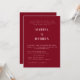Invitation vos êtres chers dans le style avec ce Script manuscrit rose et rouge personnalisé carte d'invitation de mariage. Doté d'une calligraphie élégante en rose romantique et rouge gras, ce design donne le ton parfait pour votre célébration. Personnalisez avec vos noms, date mariage et détails de l'événement pour créer une invitation unique qui reflète votre histoire d'amour. Idéale pour les mariages, les douches nuptiales, les fêtes de fiançailles et les dîners de répétition, cette invitation allie élégance intemporelle et charme moderne.
