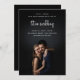 Cette élégante invitation à un mariage présente une écriture manuscrite blanche moderne et votre photo personnelle préférée pour un look simple mais glamour. Le dos de l'invitation est d'une couleur noire riche.