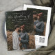 Script moderne Code QR simple Faire-part de mariage photo. Le dos a une photo et des détails supplémentaires avec le code RSVP QR. Cliquez sur le bouton Modifier pour personnaliser cette conception en fonction de vos besoins.