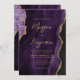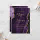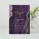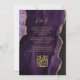 Cette élégante invitation de mariage présente une image arrière - plan d'agate d'aquarelle violette parée de parties scintillant en faux or. Le texte personnalisable combine écriture moderne chic dorée, cuivre et polices italiques. L'envers offre de l'espace pour les détails mariages sur un arrière - plan agate violet correspondant, ainsi qu'un code QR que les invités peuvent scanner pour visiter votre site Web et RSVP, ce qui permet d'économiser le coût d'impression et d'envoi de cartes RSVP séparées.