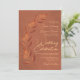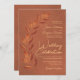 Ces faire-part de mariage présentent un design moderne avec du texte justifié droit et une pointe de feuilles d'automne peintes à la main dans les tons de rouille orange et de bois brûlé. Le lettrage comporte une police de caractères moderne et l'arrière - plan en terre cuite marbrée ajoute de la texture et de la profondeur. Simple, rustique, unique et chic, cette invitation est une excellente façon d'ajouter le style contemporain à l'élégance classique.