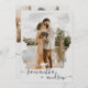Mariage de script minimaliste moderne noir et gris clair avec 2 photo collage grille avec masque photo abstrait aquarelle.