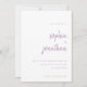 Ces invitations de mariage élégantes et minimalistes sont caractérisées par une typographie de script moderne et un texte sans serif classique pour un design simple et élégant lavande violet et blanc que vous aimerez.
