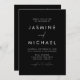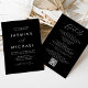 Invitations de mariage tout-en-un simples et élégantes, avec un script blanc, écrit à la main, mélangé avec du lettrage moderne contre un arrière - plan noir. Personnalisez l'avant de la faire-part de mariage minimaliste avec votre nom et vos coordonnées mariages. Personnalisez le verso de l'invitation avec des détails mariages tels que les informations sur la réception, l'hébergement à l'hôtel, les instructions RSVP et le site Web du mariage. Ajoutez le lien de votre site Web mariage souhaité au modèle QR Code fourni afin que vos invités puissent facilement RSVP en ligne et voir des informations supplémentaires sur le mariage. Les invitations de mariage tout-en-un en noir et blanc sont le choix idéal pour les mariages modernes.