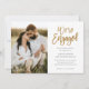 Cette Invitation de partie d'engagement moderne comprend un script d'or We're Engaged, une photo verticale et des détails de partie d'engagement. Cliquez sur Modifier pour customiser cette conception.