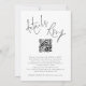 Script moderne QR Code photo Tout en un Mariage. Ajoutez votre code QR à votre site Web mariage au dos fait de cette option pratique pour vos invités à RSVP et voir tous les détails sans avoir besoin de RSVP séparé et de cartes de détails. Votre code QR sera automatiquement généré lorsque vous personnaliserez l'exemple d'URL dans votre propre. Une typographie informelle en noir pour le titre principal Le Mariage de et de détails et Rsvp sur l'envers complétant le reste du texte que vous pouvez facilement personnaliser. Remplacez l'exemple de photo par votre préféré.