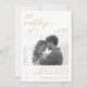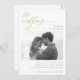 Ce faire-part de mariage photo moderne présente votre photo en noir et blanc jumelé à un élégant script doré romantique. Il est parfaitement élégant, simple et minimaliste.