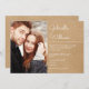 Faire-part de mariage kraft rustique à écriture moderne avec vos photos spéciales et détails de célébration sur un arrière - plan kraft rustique. Conçu par Thisisnotme©