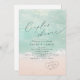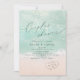 Beau turquoise abstraite aquarelle scintillante vague d'océan et les coeurs dans l'arrière - plan de plage de sable, surmonté d'un script élégant et d'élégante police serif, moderne et simple. Grande invitation pour la douche de mariage de plage nautique, mariage de destination tropicale, douche de couple sur le thème de l'océan côtier en été.