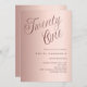 Une invitation design et moderne pour une fête de 21e anniversaire. arrière - plan rose dégradé d'or et le mot Vingt et un écrit avec d'élégantes grandes lettres de script en or rose foncé. Personnalisez et ajoutez un nom et des détails du parti.