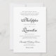 Ce faire-part de mariage formel élégant présente un texte traditionnel en écriture noire ornée et élégante et de petites polices de caractères majuscules sur un arrière - plan blanc. L'inverse est noir.
