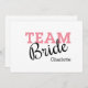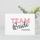 Faites savoir à tout le monde qui est l'équipe sur laquelle vous êtes avec cette invitation personnalisée Team Bride Pink script. Parfait pour les soirées bachelorette, les douches nuptiales et autres événements mariages.